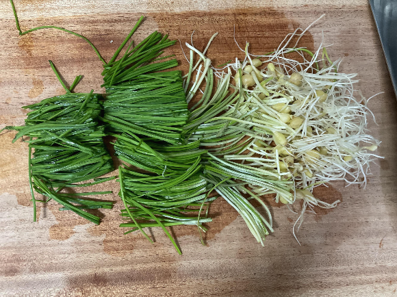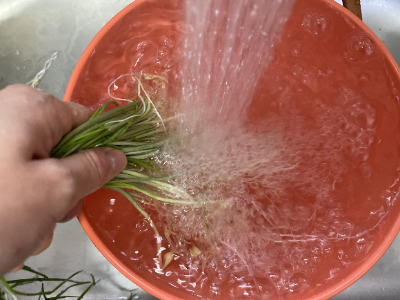 알뿌리 부분은 씹기 편하게 좀 더 잘게 잘라주거나 다집니다.